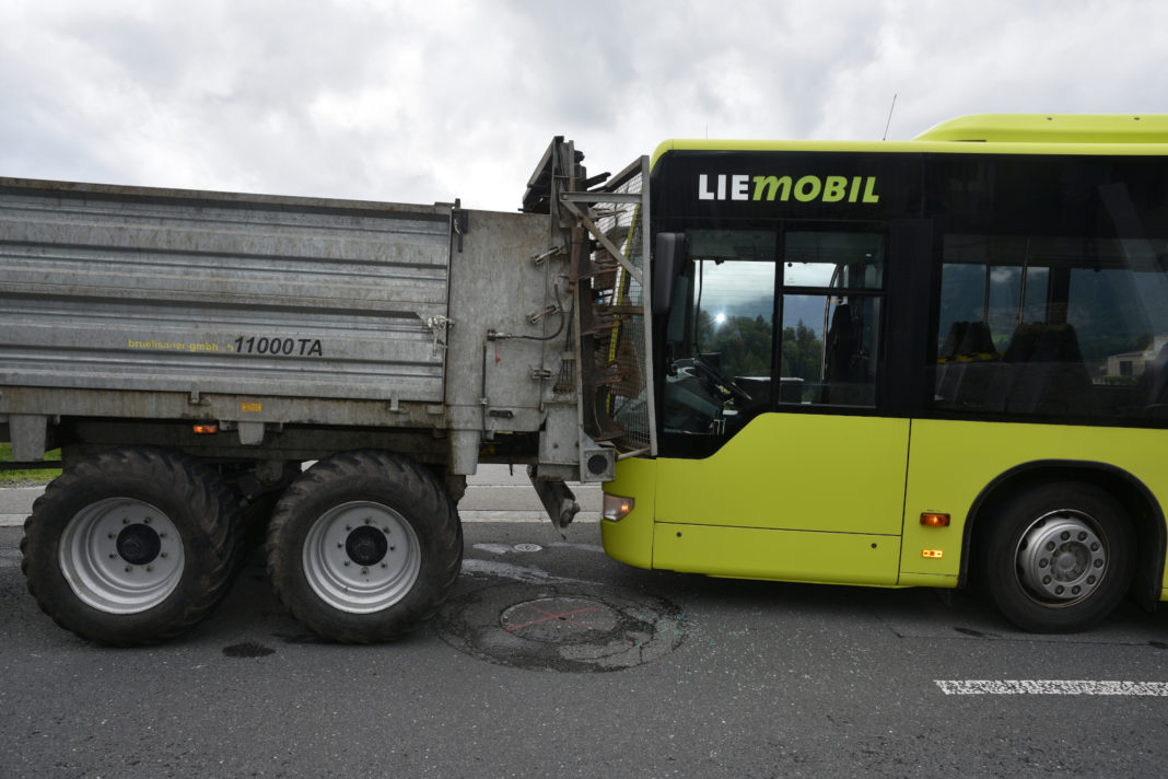 Gegen 13:30 Uhr stand ein Mann mit seiner Fahrzeugkombination, bestehend aus einem Traktor und einem Anhänger, bei der Einmündung der Nebenstrasse «Eschner Rütte». Als er in der Steigung anfahren wollte, rollte das Fahrzeug rückwärts in den dahinterstehenden Linienbus.