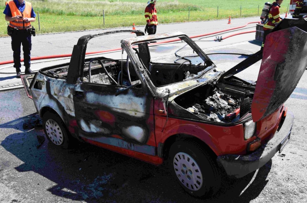 Am Montag (01.06.2020), kurz nach 14:30 Uhr, ist auf der Staatsstrasse ein Auto in Brand geraten. Das Auto erlitt Totalschaden. Verletzt wurde niemand.