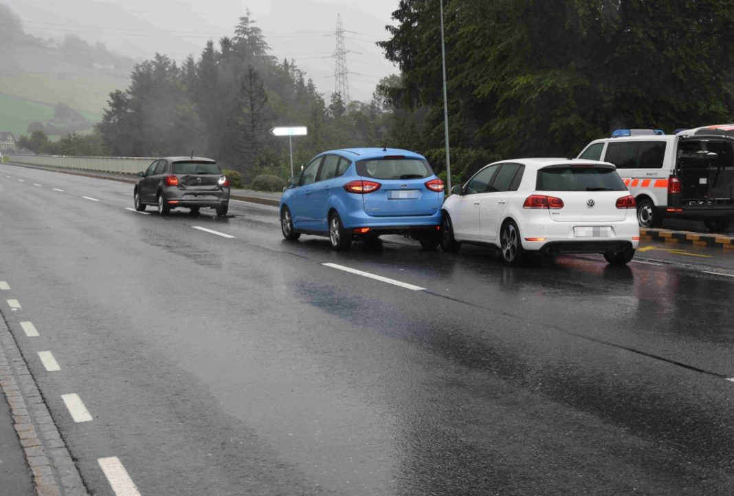 Ein 39-jähriger Mann beabsichtigte mit seinem Auto links in den Parkplatz des Restaurants Waldegg einzubiegen. Dies nahm eine 65-jährige Frau, welche ebenfalls in Richtung Ricken fuhr, zu spät wahr. Ihr Auto kollidierte mit dem abbiegenden Auto. Wie die Kollision des dritten, nachfolgenden Autos eines 26-jährigen Fahrers entstand, ist noch unklar.