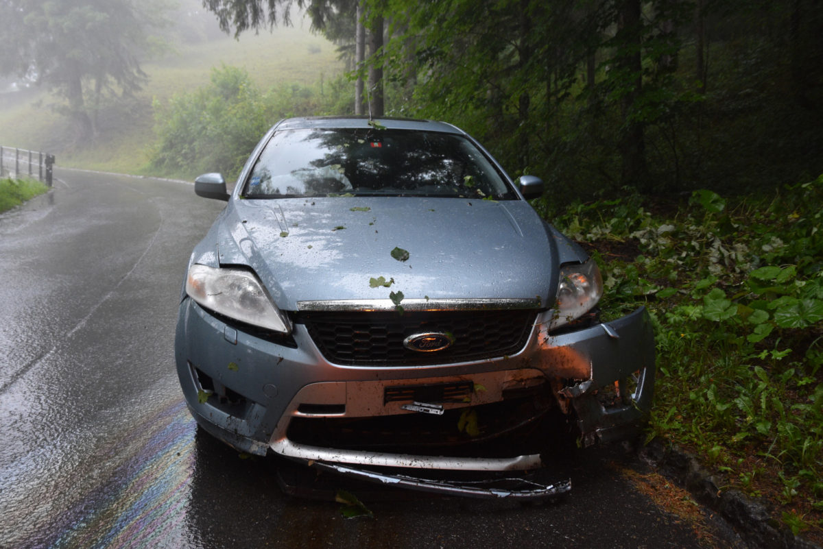 Gegen 06:00 Uhr fuhr ein alkoholisierter Mann mit seinem Auto auf der Maseschastrasse talwärts, als er mit einem auf der linken Strassenseite befindlichen Baum kollidierte.