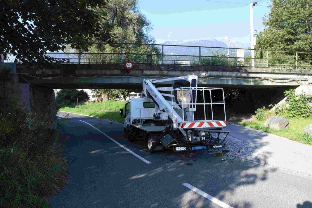 Am Donnerstag (30.07.2020), kurz nach 7:40 Uhr, ist eine 24-jährige Frau mit der Hebebühne ihres Arbeitsfahrzeugs gegen die Eisenbahnbrücke an der Lagerstrasse geprallt. Dabei wurde die 18-jährige Beifahrerin verletzt.