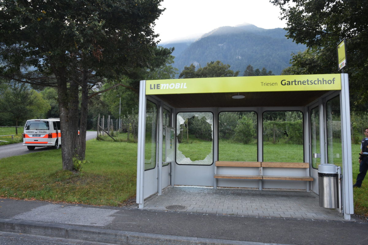In der Nacht von Mittwoch auf Donnerstag wurde in Triesen eine Scheibe einer Bushaltestelle eingeschlagen.