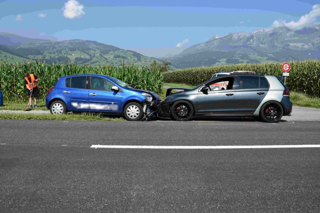 Der 35-jährige Mann fuhr mit seinem Auto auf der St.Gallerstrasse von Buchs Richtung Haag. Kurz vor der Einmündung zum Mühlbachweg überholte er ein vor ihm fahrendes landwirtschaftliches Fahrzeug sowie einen Lastwagen. Gleichzeitig fuhr ein 36-jähriger Mann mit seinem Auto und der 29-jährigen Frau als Beifahrerin in die Gegenrichtung. Als der 35-Jährige das entgegenkommende Auto bemerkte, lenkte er sein Auto nach links auf den Velostreifen. Auch der 36-Jährige wich auf den Velostreifen aus, wo es zum frontalen Zusammenstoss der beiden Autos kam. Beim Aufprall wurde die 29-jährige Beifahrerin leicht verletzt. Sie konnte sich selbständig in ärztliche Behandlung begeben.