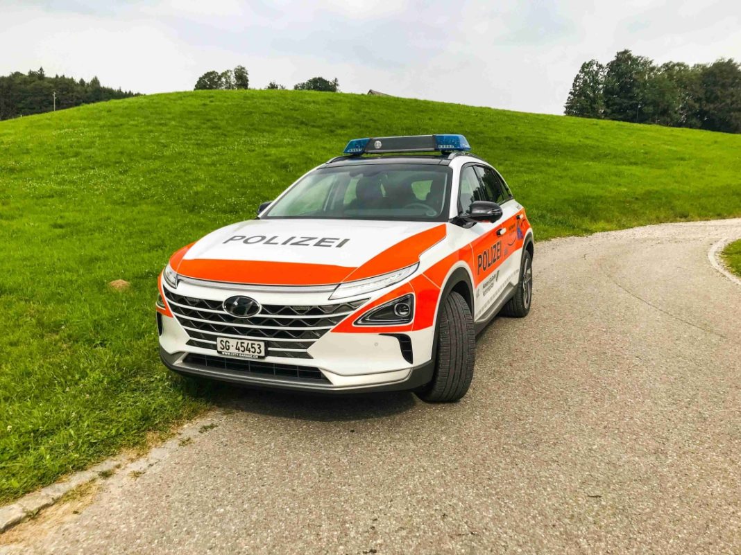 Am Donnerstag (16.07.2020) hat die Kantonspolizei St.Gallen ihr neustes Fahrzeug vorgestellt: ein wasserstoffbetriebenes Polizeiauto. Neben 20 Elektroautos, davon sind rund die Hälfte beschriftet, ist die Anschaffung eines Wasserstoffautos ein weiterer Schritt nach vorne in der Nachhaltigkeitsstrategie der Kantonspolizei St.Gallen. Das Wasserstoffauto soll ab August 2020 bei der Verkehrspolizei, in der Abteilung Verkehrsinstruktionen, zum Einsatz kommen.