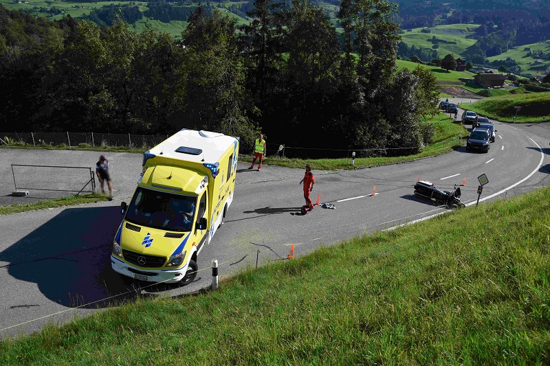(Ennetbühl) – Am Samstag (25.07.2020), kurz nach 17:30 Uhr, ist es auf der Schwägalpstrasse zu einer Kollision zwischen einem Motorrad und einem Auto gekommen.