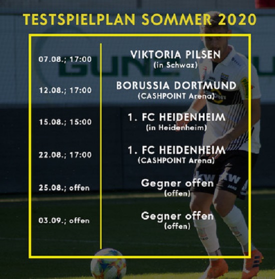 12.08.2020: Testspiel vs. Borussia Dortmund (17:00 Uhr in der CASHPOINT Arena)