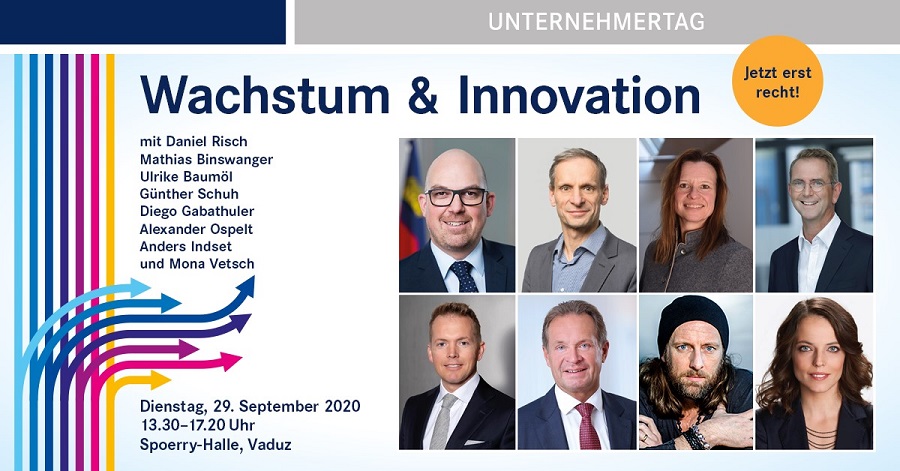 Die 15. Ausgabe des Unternehmertags findet am Dienstag, 29. September 2020, in der Spoerry-Halle in Vaduz statt und widmet sich dem Thema „Wachstum und Innovation – jetzt erst recht“.
