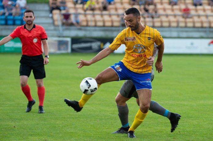 Szene vom Testspiel USV-TSV Berg (Württg.), 1.8.2020, v.l. Wolfnger Fabio, Noah Frommelt und Sandro Wolfinger. Foto: Jürgen Posch