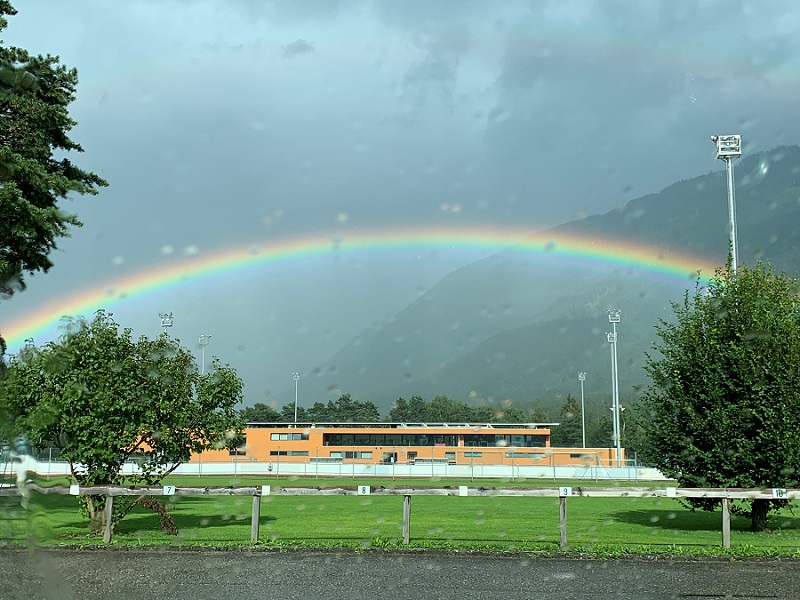 In diesen Zeiten brauchen wir Zeichen der Hoffnung und Zuversicht. So wie es der Regenbogen seit Urzeiten symbolisiert. Er ist das sichtbare und kräftigste äussere Zeichen der Hoffnung auf bessere Zeiten. Er macht immer gute Laune. Und seit jeher sind die Menschen von dem Naturschauspiel fasziniert. Fast greifbar (wie hier im Unterland), doch weit weg, verschwinden die mal kräftigen, mal zarten Farbbögen nach wenigen Minuten. Die Aufnahme beim Sportpark Eschen/Mauren stammt von Astrid Oehri.