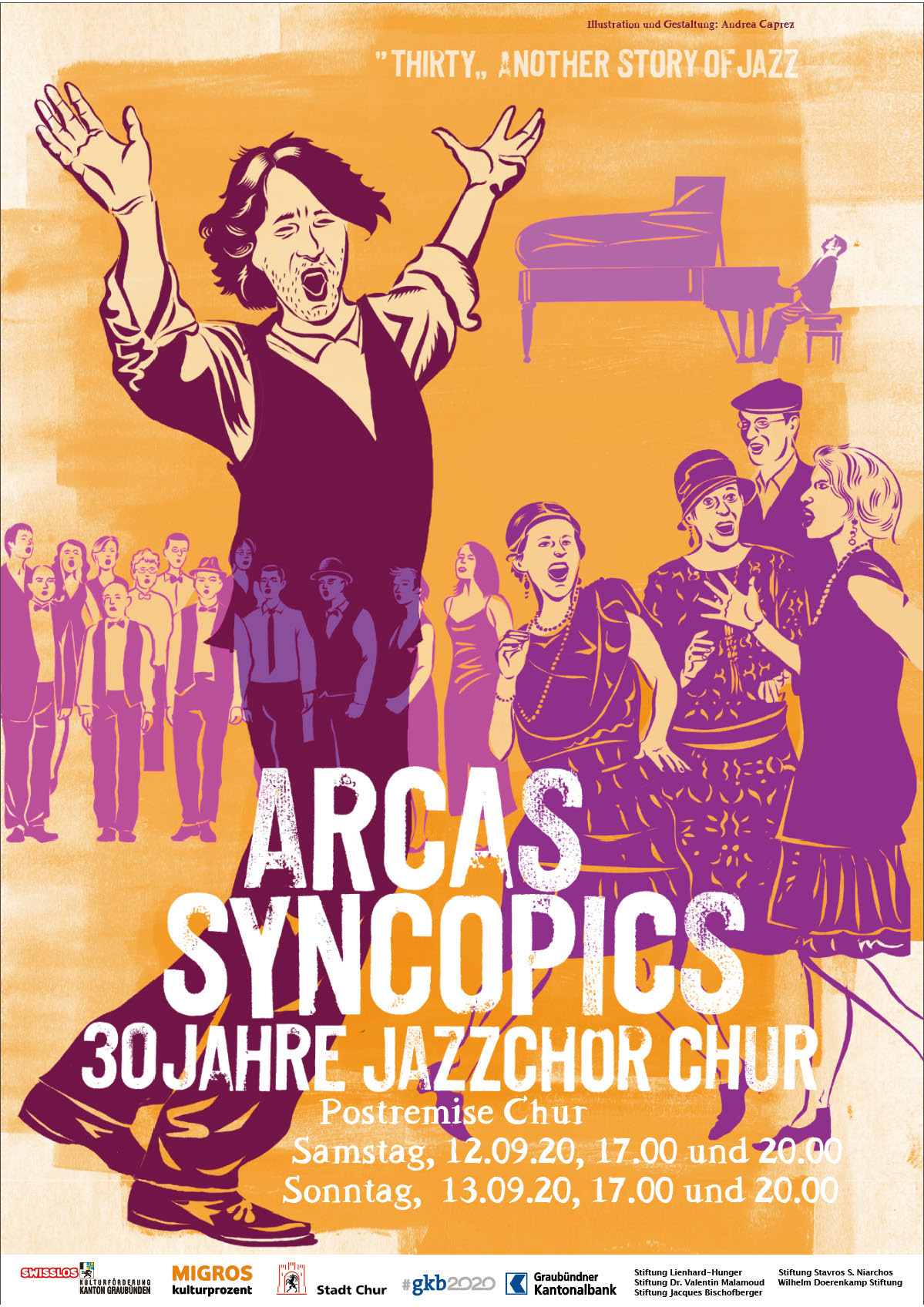 Seit 30 Jahren erfrischen die arcas syncopics die Bündner Chorszene mit immer wieder neuen überraschenden Auftritten. Nach den Short Stories of Jazz I und II ist es somit Zeit für Another Story of Jazz. 2016/17 waren es die Ursprünge des Jazz von den Anfängen bis in die 1930er/40er Jahre, mit denen der Churer Jazzchor sein buntgemischtes Publikum begeisterte. Mit «Body & Soul» wurde die Geschichte fortgesetzt und durch die Arrangements des Bündner Musikers Valentin Kessler vom Bebop der 1940er bis in die heutige Zeit und den Kanton Graubünden transportiert. Mit der Musikgeschichte der arcas syncopics wird jetzt augenzwinkernd eine weitere Jazzgeschichte auf die Bühne gebracht.