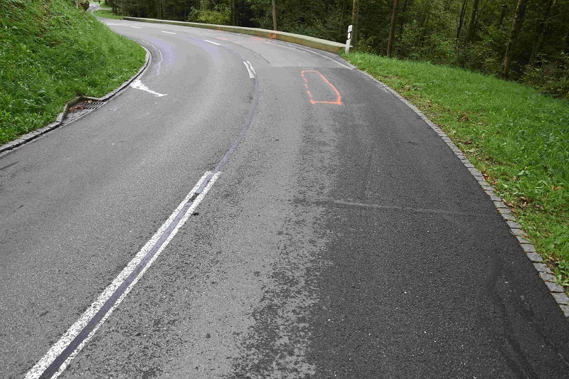 Die 22-jährige Frau fuhr als Letzte einer Motorradgruppe in Richtung Eichberg. Vor ihr fuhr die 20-jährige Motorradfahrerin. In einer Linkskurve rutschte das Motorrad der 20-Jährigen auf der nassen Strasse weg. Dadurch verlor sie die Kontrolle über ihr Motorrad und stürzte. Die 22-jährige Frau bemerkte dies und bremste stark ab. Dabei rutschte ihr das Motorrad weg und kam ebenfalls zu Fall.