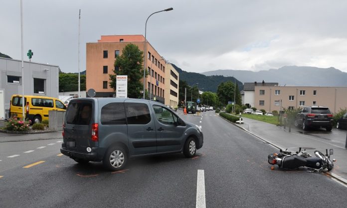Gegen 10:00 Uhr fuhr ein Motorradfahrer in Balzers auf der Landstrasse in nördliche Richtung und wurde auf Höhe ‘Alte Landstrasse’ von einem einfahrenden Personenwagen überrascht. Beim eingeleiteten Ausweichmanöver kam er zu Sturz und verletzte sich. Er wurde mit dem Rettungsdienst ins Spital gebracht.