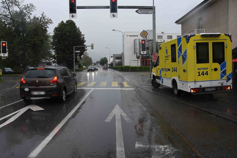 (Diepoldsau) – Am Freitagnachmittag (28.08.2020), um 15:20 Uhr, ist es auf der Hohenemserstrasse zu einer Kollision zwischen einem Auto und einem Velofahrer gekommen. Ein 10-Jähriger missachtete das Rotlicht und fuhr mit seinem Velo über den Fussgängerstreifen. Dabei wurde er von einem Auto erfasst und eher leicht verletzt