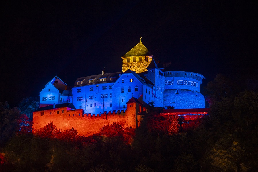 Bis Mitternacht erstrahlte in allen elf Gemeinden je ein Gebäude in den Landesfarben und bot einen wunderschönen Ausklang des diesjährigen Staatsfeiertags. 2/2