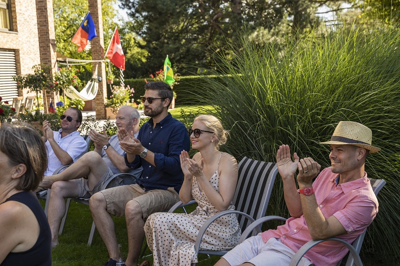 Bei strahlendem Sonnenschein fanden im ganzen Land Feiern im kleinen Kreis statt – sei es zuhause oder in einem der Liechtensteiner Gastronomiebetriebe. Einige von ihnen profitierten von der Möglichkeit, sich Privatkonzerte ins Haus zu holen. «Mit rund 120 Konzerten von 28 heimischen Künstlern fand heute wahrscheinlich das grösste Musikfestival in Liechtensteins 301-jähriger Geschichte statt», meint Marxer schmunzelnd. Während sich die Gastgeber über die familiären Hauskonzerte freuten, war es auch für die Künstler ein aussergewöhnliches Erlebnis: «Ich konnte mir im Vorfeld kaum vorstellen, wie ein Staatsfeiertag ohne Volksfest funktionieren soll. Aber bei diesen kleinen Akustik-Konzerten herrschte eine ganz spezielle, persönliche Stimmung, die irgendwie perfekt in dieses besondere Jahr 2020 gepasst hat», fasst Benno Marxer Mitglied der Band «HitBelebungsWerkstatt» die Sichtweise der Bands gut zusammen.