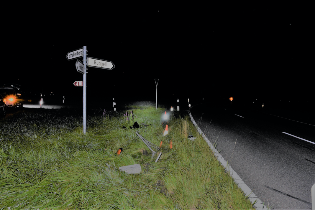 Am 06.08.2020 fuhr ein Fahrzeuglenker gegen 22.15 Uhr, mit seinem Personenwagen auf der Nofler Strasse in Schellenberg in Richtung Ruggell. Aufgrund der überhöhten Geschwindigkeit verlor der Lenker auf Höhe der Abzweigung Limsenegg die Kontrolle über sein Fahrzeug, überquerte die Gegenfahrbahn und geriet ins angrenzende Wiesland, wo er gegen mehrere Randleitpfosten und eine Baustellentafel kollidierte. Der Lenker wurde dabei nicht verletzt.