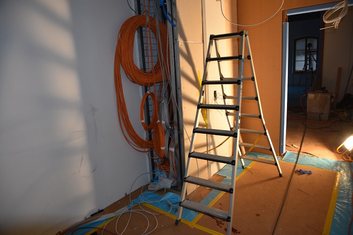 Ein Arbeiter war gegen 11:30 Uhr damit beschäftigt, im Gang eines Gebäudes ein Elektrokabel im Deckenbereich zu verlegen. Dabei kippte die Leiter nach hinten, wobei der Mann das Gleichgewicht verlor und zu Boden stürzte. Er wurde mit dem Rettungsdienst ins Spital gebracht.