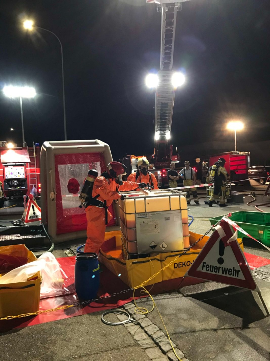 Ein Arbeiter bemerkte, dass in der Lagerhalle eines Industriebetriebs mehrere Liter einer Flüssigkeit aus einem Bidon auf den Boden der Lagerhalle ausliefen. In der Folge wurde die Kantonale Notrufzentrale verständigt, welche sowohl Chemie- als auch Feuerwehr, Polizei und Sanität aufbot. Bei der Flüssigkeit handelte es sich um Ankor – eine giftige Flüssigkeit, die zur Metallbeschichtung verwendet wird. Die Einsatzkräfte konnten diese rasch eindämmen und die Lage so unter Kontrolle bringen. Nebst Chemie- und Feuerwehr standen auch weitere Sachverständige im Einsatz. Es bestand zu keinem Zeitpunkt eine Gefahr für Mensch oder Umwelt. Weshalb die Flüssigkeit aus dem Behälter ausgetreten wird, ist derzeit noch nicht bekannt.