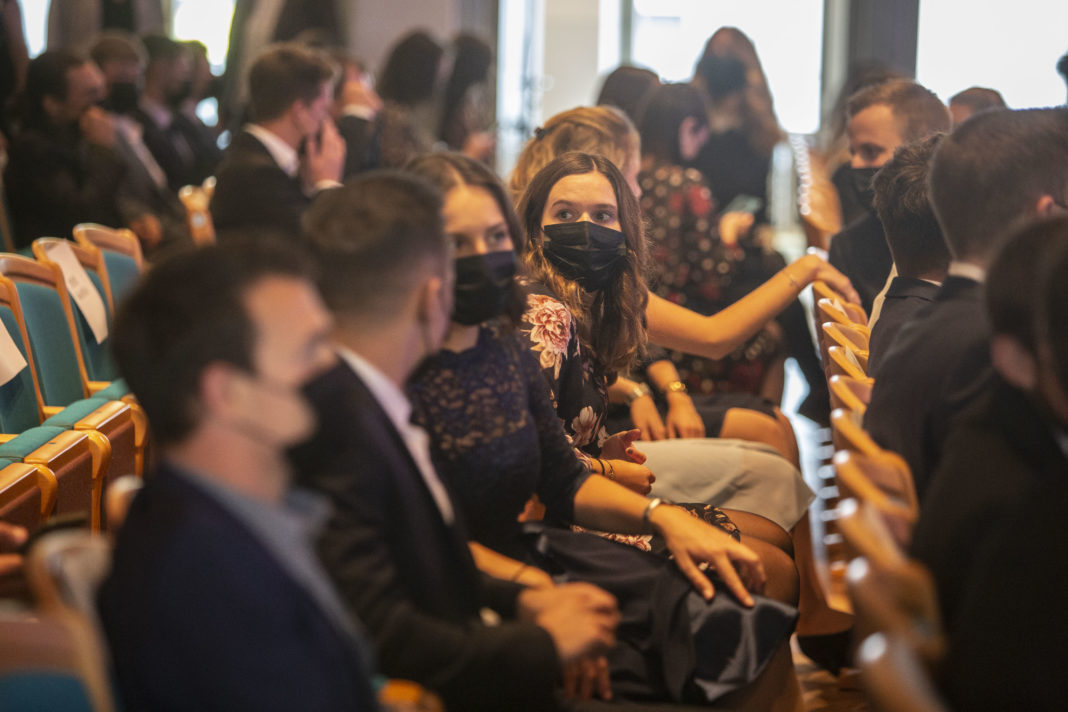 Irgendwie wie Geisterspiele oder eine Zeremonie mit Ninjas: Die Diplomfeier der Lehre Wirtschaft der OST – Ostschweizer Fachhochschule war ruhiger und die Freude am Erreichten war vor allem in den Augen der Maske tragenden Absolventinnen und Absolventen zu erkennen. Während in anderen Jahren die Eltern und Gäste von den Rängen applaudierten, feierten sich die Absolventinnen und Absolventen selbst und freuten sich über die neu gewonnene und gemäss dem Festredner zu erhaltende Freiheit. 117 Bachelor in Betriebsökonomie und 20 in Wirtschaftsinformatik sowie 27 Master in Betriebsökonomie und 14 in Wirtschaftsinformatik erhielten die Diplome – darunter der erste Jahrgang des Bachelors Wirtschaftsinformatik. Gefeiert wurden die Absolventinnen und Absolventen am 25. September 2020 in der Tonhalle in St.Gallen.