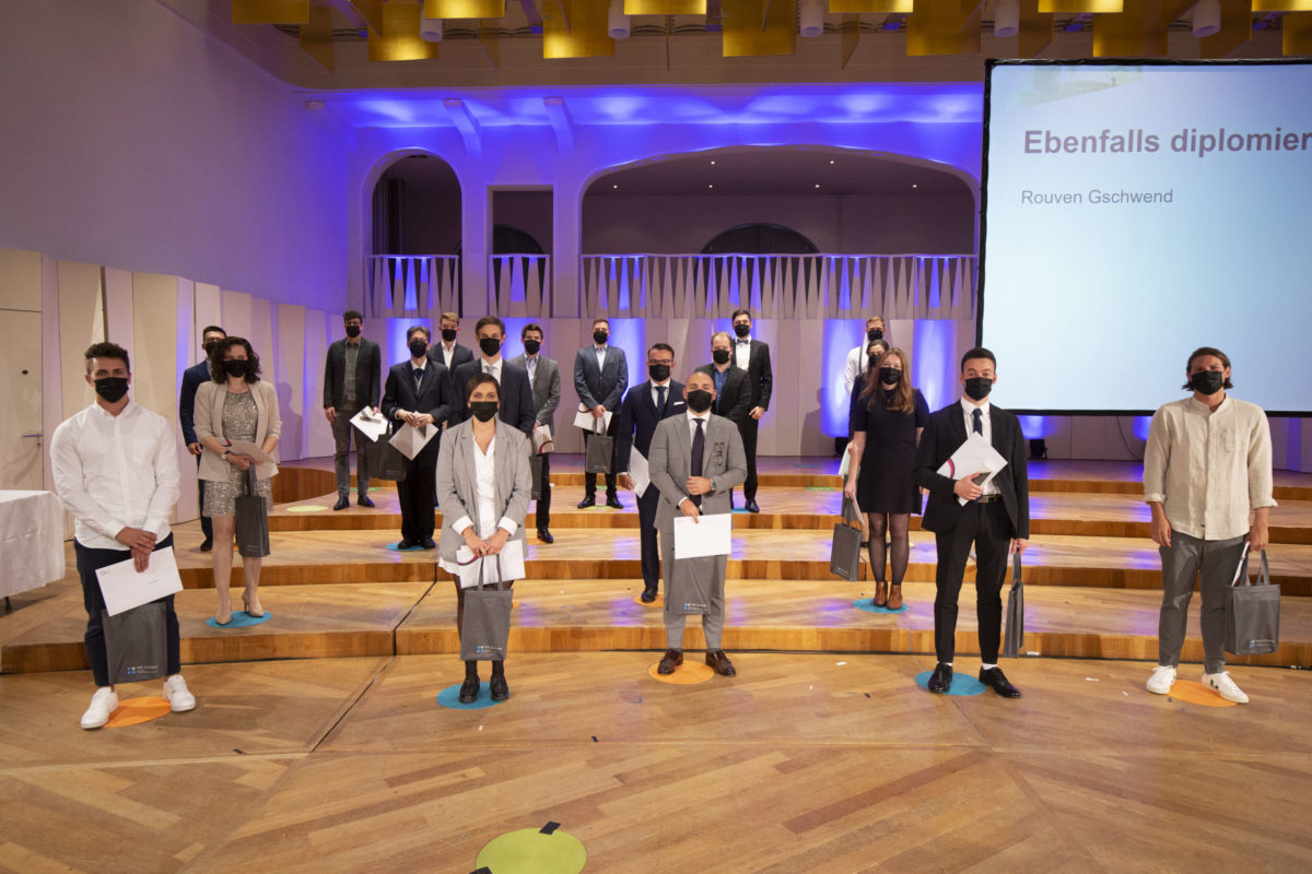 137 Bachelor- und 41 Masterabsolventinnen und Absolventen erhielten am Freitag, 25. September 2020 ihre Diplome unter besonderen Corona-Schutzmassnahmen. Zum ersten Mal erhielten auch Studierende des Bachelorstudiengangs Wirtschaftsinformatik ihre Diplome.