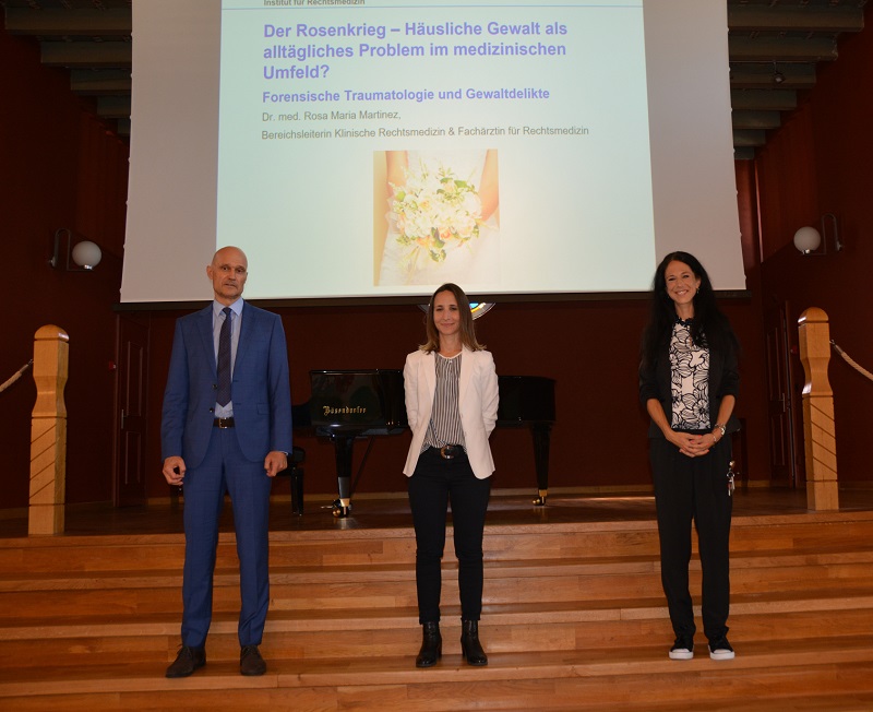 Im Mittelpunkt ihres Vortrags mit dem Thema «Der Rosenkrieg – Häusliche Gewalt als alltägliches Problem im medizinischen Umfeld» standen das Erkennen, die Interpretation und Dokumentation von Verletzungen, die auf häusliche Gewalt hinweisen können. Ebenfalls wurde in diesem Zusammenhang die neue Weiterbildung zur «Forensic Nurses» beleuchtet. Dabei handelt es sich um Pflegefachkräfte, die im Rahmen der Ausbildung sich Wissen und Techniken aneignen, um Gewaltbetroffene zu erkennen, zu behandeln und die Spuren zu dokumentieren. Diese Pflegefachpersonen werden verstärkt auf Notfallstationen in Spitälern, im ambulanten Pflegebereich (Spitex) wie auch in Arztpraxen eingesetzt.