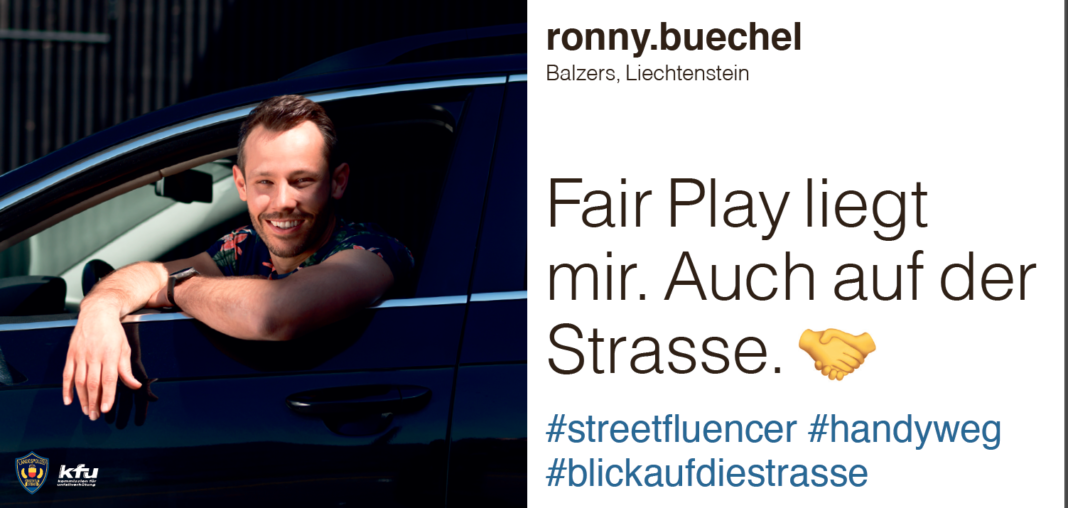 Die neue Verkehrskampagne der Landespolizei und der Kommission für Unfallverhütung (KFU) „Streetfluencer – Ablenkung am Steuer“ macht auf die Thematik der Ablenkung im Strassenverkehr aufmerksam. Der eigens dafür kreierte Begriff #streetfluencer beschreibt Personen, die sich im Strassenverkehr korrekt, rücksichtsvoll sowie vorbildlich verhalten und andere Verkehrsteilnehmer positiv beeinflussen.