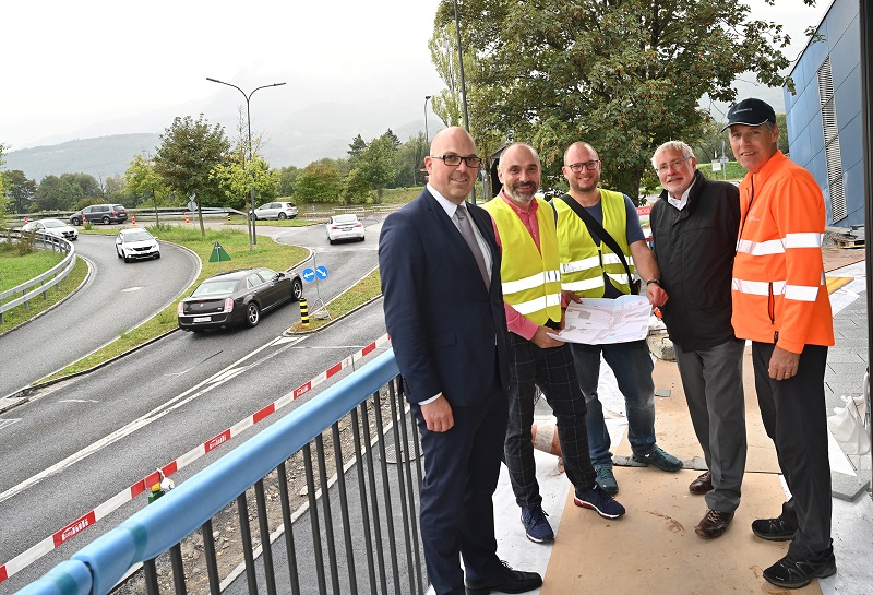 Infrastrukturminister Daniel Risch, Markus Verling, und Ralf Reutegger von der Firma Seger&Gassner, Marco Caminada, Amt für Bau und Infrastruktur, Peter Frick Amt für Bau und Infrastruktur. Quelle: IKR