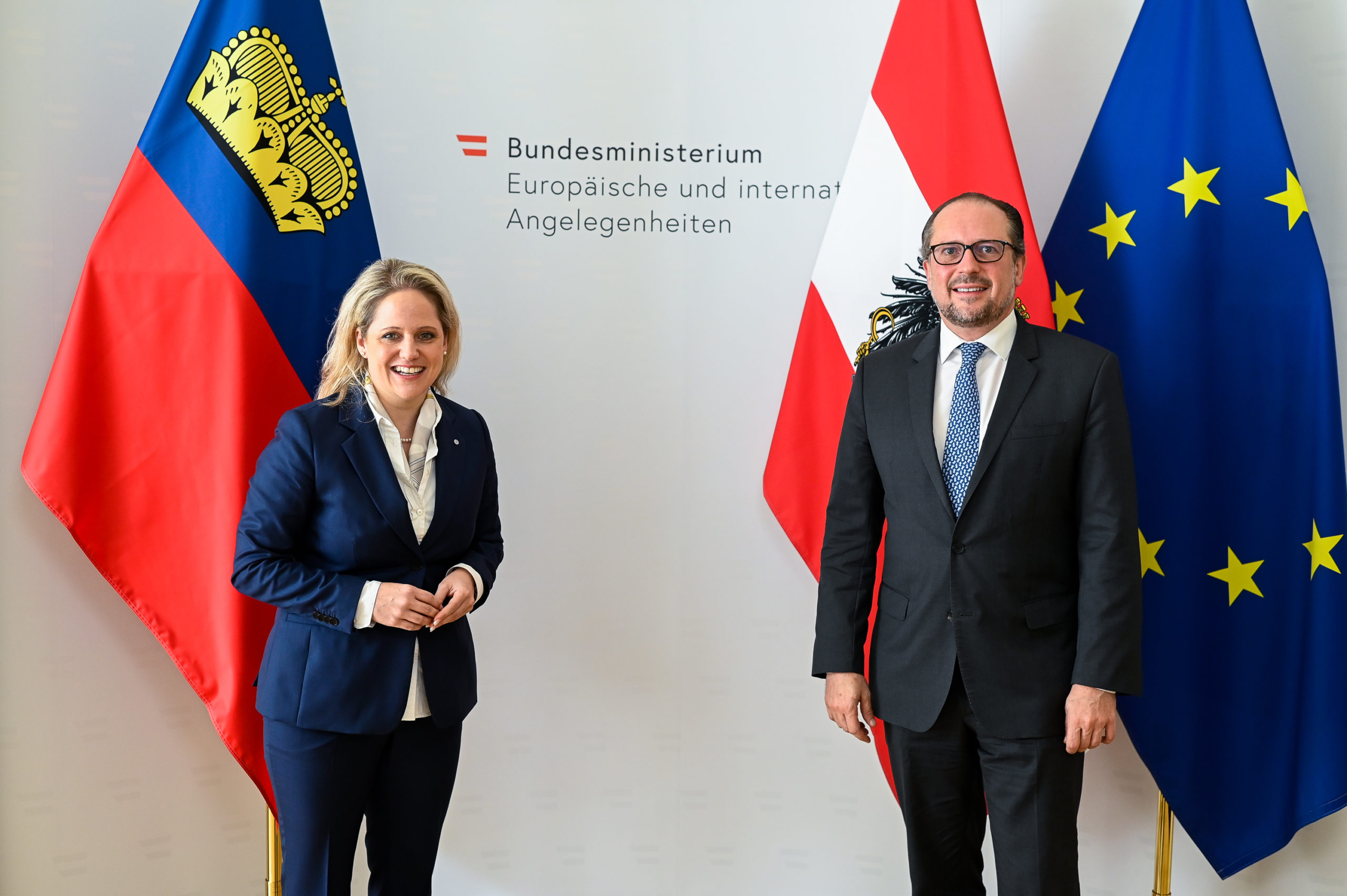 Bei einem Arbeitsgespräch mit dem österreichischen Aussenminister Alexander Schallenberg tauschte sich Aussenministerin Eggenberger über die bilateralen Beziehungen und Aspekte der multilateralen Zusammenarbeit aus. Vor dem Hintergrund der COVID-19-Pandemie unterstrichen beide Seiten die Bedeutung einer engen nachbarschaftlichen Kooperation. Zudem wurden aussenpolitische Themen diskutiert, unter anderem die als öffentlich-private Partnerschaft initiierte „Liechtenstein Initiative for Finance Against Slavery and Trafficking“ (FAST), welche den globalen Finanzsektor mit konkreten Instrumenten für die Aufdeckung von moderner Sklaverei und Menschenhandel ausstattet.