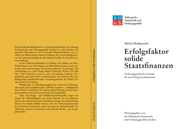 Solide Staatsfinanzen sind ein wesentlicher Erfolgsfaktor und Erfolgsindikator für Wohlstand und Stabilität eines Landes. Dies gilt nicht nur, aber doch besonders deutlich während Krisen wie der heutigen. Die Stiftung für Staatsrecht und Ordnungspolitik hat eine umfassende Studie vorgelegt, in der die Bedeutung solider Finanzen von Land, Gemeinden und Sozialversicherungen gerade für eine kleine offene Volkswirtschaft wie Liechtenstein untersucht wird. Vor allem in nahezu weitweiten Wirtschaftskrisen wie derzeit erweisen sich Rücklagen in den Staatskassen als überaus vorteilhaft, um das Land souverän durch die Krise zu bringen. Dies zeigt die aktuelle Studie von Prof. Dr. Michael Wohlgemuth.