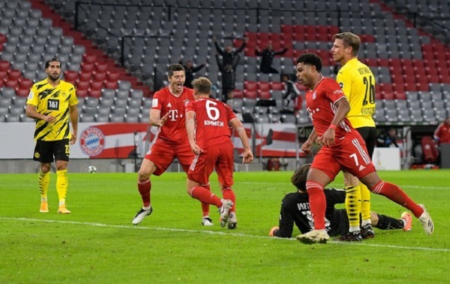 Die Bayern gingen gegen Borussia Dortmund durch Tolisso (19.) und Müller (32.) mit 2:0 in Führung. Dabei blieb der BVB in der ersten Hälfte weitgehend blass, kam aber zum Anschlusstreffer durch Brandt. Nach der Pause machten es die Dortmunder deutlich besser und agierten druckvoller. Haaland glich aus (55.), vergab aber beim Stande von 2:2 eine kapitale Chance. Er scheiterte allein vor Keeper Neuer. Die Entscheidung fiel dann gegen Ende der Partie zugunsten der Bayern.
