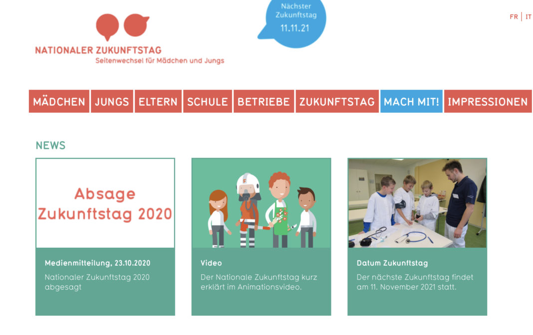 Die Absage ist bedauerlich aber es bleibt der Ausblick auf den Nationalen Zukunftstag 2021: Er soll am 11. November 2021 stattfinden.