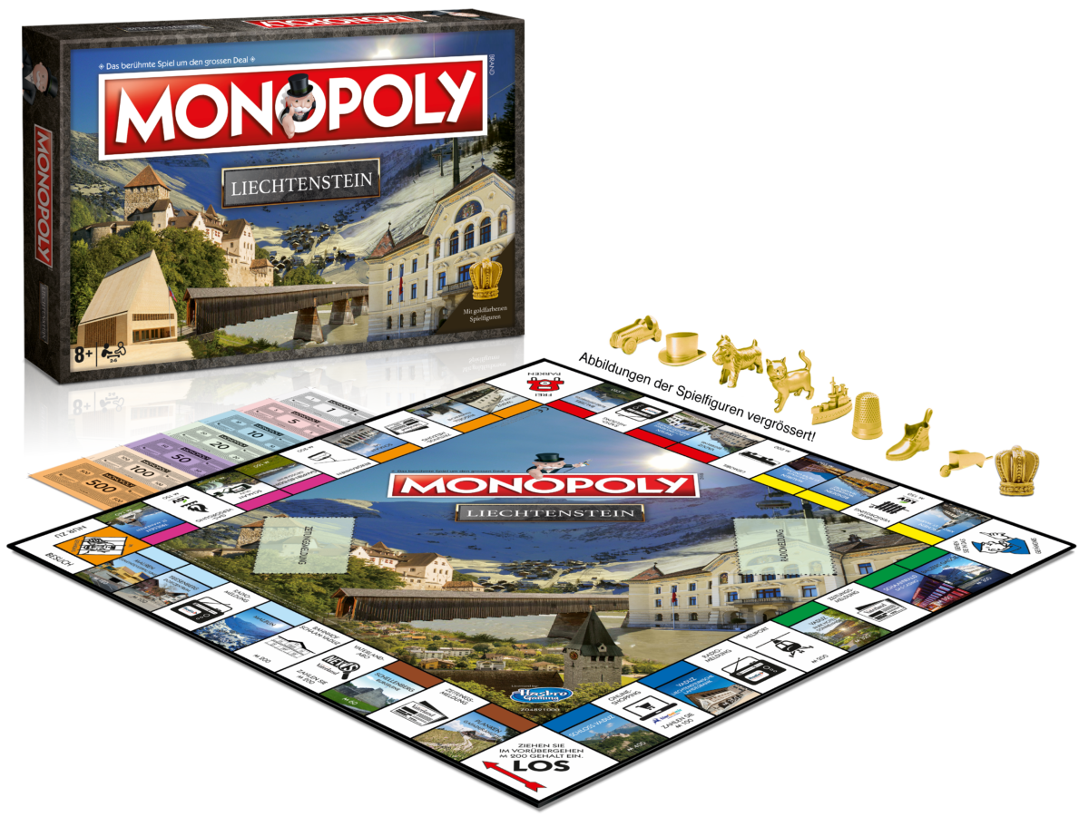 Die Liechtensteiner Bevölkerung ist im Herbst 2019 dem Aufruf gefolgt, sich aktiv am Entwicklungsprozess zu beteiligen. Das Resultat daraus ist eine wunderschöne Monopoly Edition mit vielen Bildern und allen Gemeinden auf dem Spielbrett. Wer möchte nicht einmal das Schloss Vaduz, die Gafadurahütte, den SAL in Schaan oder die Burg Gutenberg in Balzers besitzen und damit zum mächtigsten Liechtensteiner werden? Oder bauen Sie jetzt ganz einfach Häuser oder ein Hotel im Malbun und verdienen damit ein Vermögen. Alles das ist mit dem neuen Monopoly Liechtenstein einfach möglich.