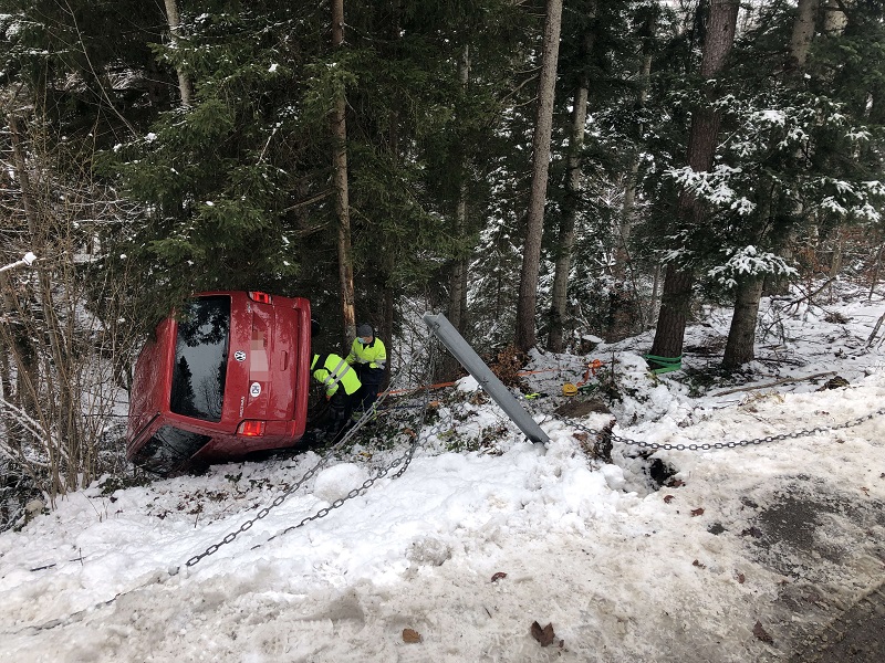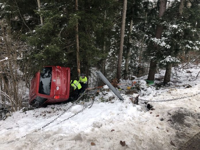 Ein 42-jähriger Mann war mit seinem Auto von Nassen in Richtung Mogelsberg unterwegs. In einer Linkskurve kam das Auto auf der schneebedeckten Fahrbahn ins Rutschen, fuhr einen Abhang hinunter und prallte in einen Baum. Der 42-jährige Fahrer und seine Beifahrerin blieben glücklicherweise unverletzt.