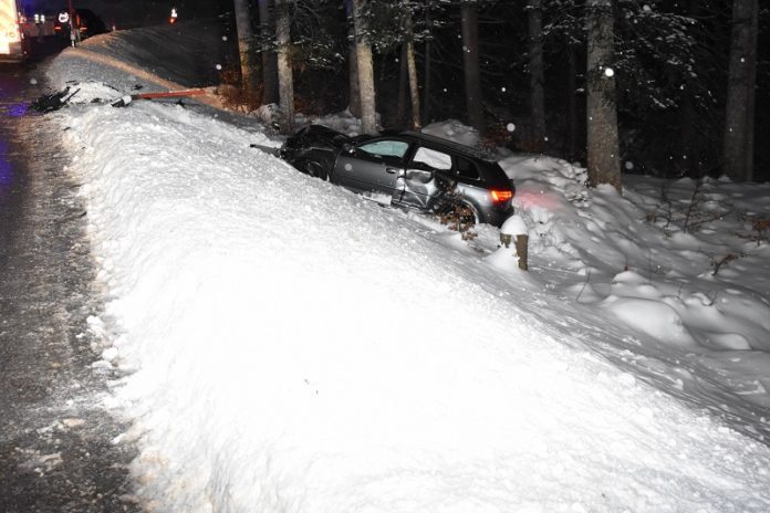 Ein 20-jähriger Mann fuhr mit seinem Auto von der Schwägalp in Richtung Neu St.Johann. In einer Rechtskurve, Höhe Witriet, kam das Auto ins Schleudern. Es geriet auf die Gegenfahrbahn und kollidierte seitlich-frontal mit dem korrekt entgegenkommenden Auto eines 42-jährigen Mannes. Durch die Wucht der Kollision wurde dieses über den Strassenrand hinaus in den nahen Waldrand abgewiesen. Dieser Fahrer suchte selbständig einen Arzt auf. Die 45-jährige Beifahrerin im unfallverursachenden Auto wurde mit leichten Verletzungen von der Rettung ins Spital gebracht. Beide Autos wurden total beschädigt.