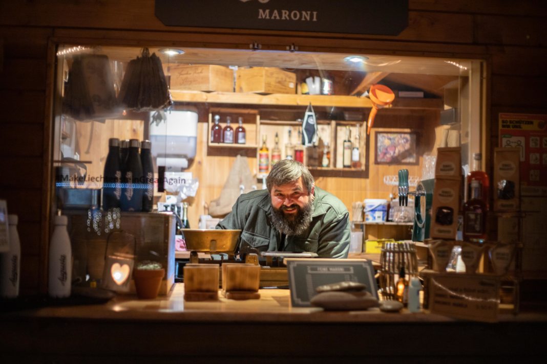 «Auf die Idee gekommen bin ich vor rund zwei Jahren, als Esther Schindler ihr ‹Maronihüsle› in Eschen aufgegeben hat», sagt Leander Marxer. Er hat den Betrieb übernommen und ausgebaut. Inzwischen hat er trotz Corona drei Standorte, an denen er Maroni, Glühwein und andere Getränke verkauft – in Eschen steht sein Verkaufshäuschen neben der Post, in Bendern neben dem «Deutschen Rhein» und in Balzers auf dem Parkplatz östlich der Gemeindeverwaltung. Sein Geschäft ist noch jung und prompt kam die Pandemie dazwischen. «Da muss man schon ein wenig erfinderisch sein», sagt Leander Marxer und zeigt sich kämpferisch. «Zum Beispiel kann man bei mir den Glühwein inklusive Thermosflasche kaufen und die dann wieder zum Nachfüllen an die Stände bringen. Daneben produzieren wir unser eigenes Magenbrot und bald gebrannte Mandeln.»