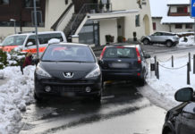 Gegen 10:45 Uhr fuhren zwei Personenwagen in eine durch die Schneeräumung entstandene Fahrbahnverengung...