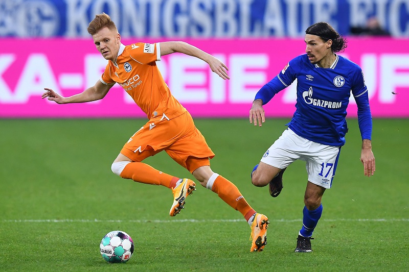 Foto: Stambouli Benjamin, rechts von Schalke 04 am 22. Dezember beim Pokalspiel in Ulm. Foto: Picture Alliance, Frankfurt/Main