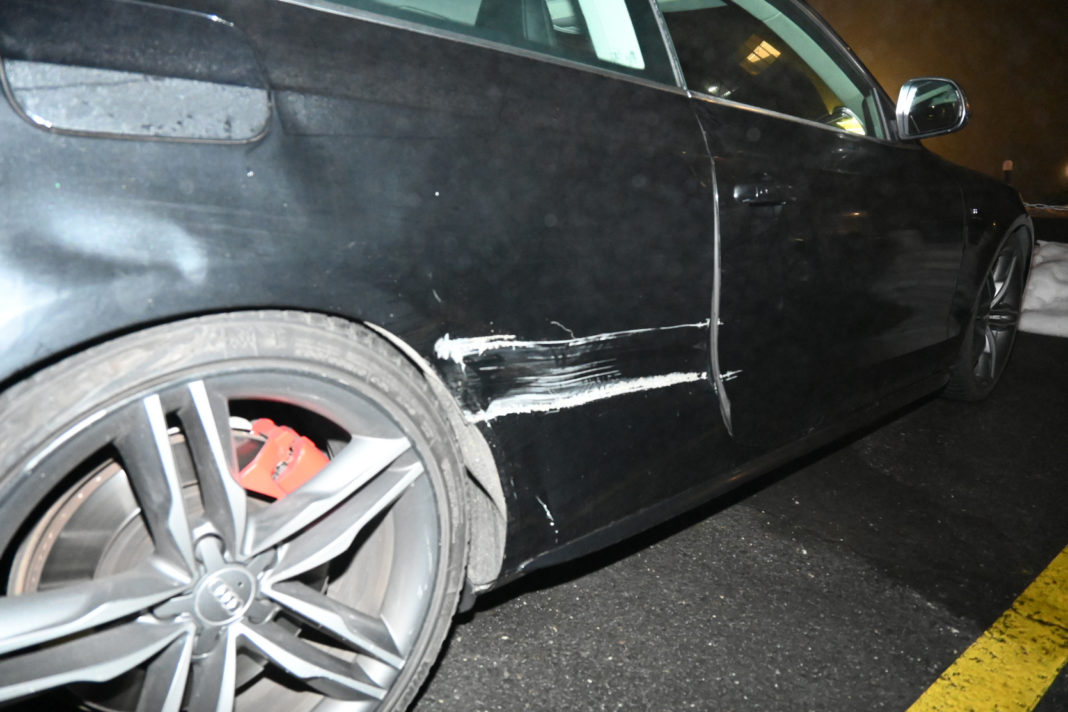 Gegen 06:10 Uhr fuhr ein Autolenker auf der Nebenstrasse «Alte Landstrasse» und musste dabei an einem stillstehenden Lastwagen vorbeifahren. Aufgrund der vereisten Strasse kollidierte er mit dem Unterfahrschutz des Lastwagens. An beiden Fahrzeugen entstand Sachschaden.