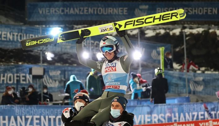 Der Pole Kamil Stoch (33) hat zum 3. Mal die Vierschanzentournee der Skispringer gewonnen. Beim letzten der vier Springen fuhr der 33jährige Routinier in Bischofshofen einen weiteren Einzelsieg ein und sicherte sich nach 2016/17 und 2017/18 einen weiteren Triumph bei diesem Prestigeevent.