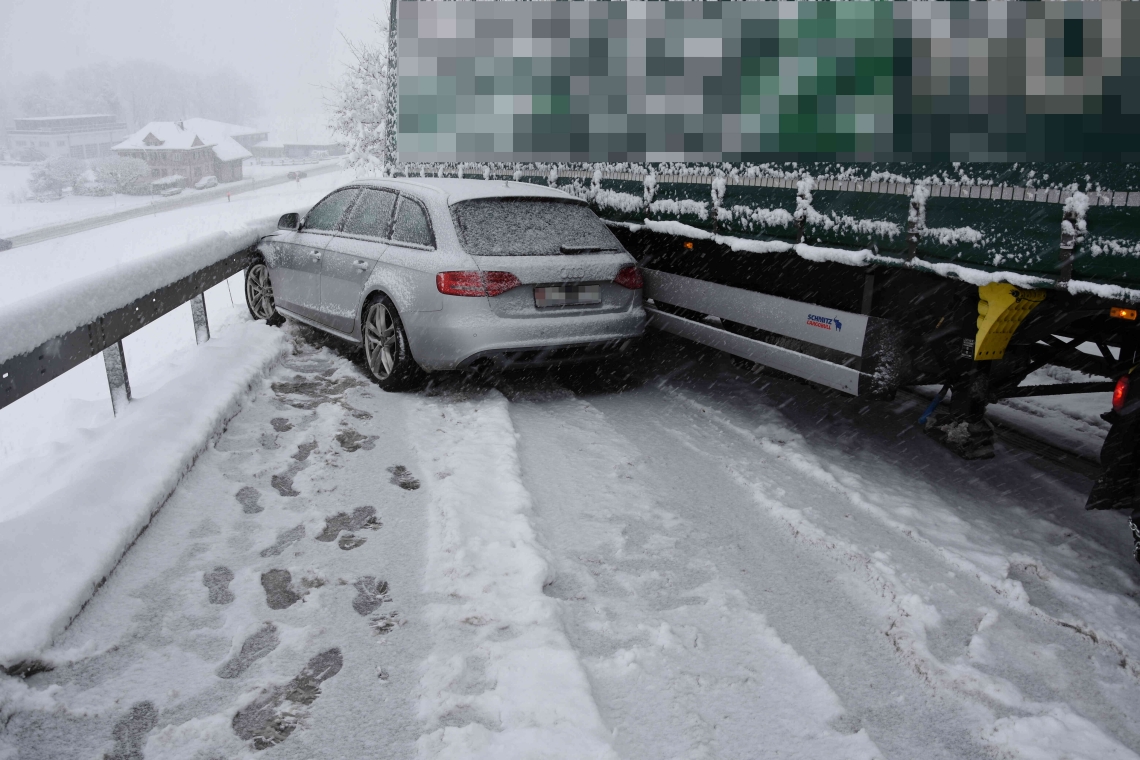 Am Donnerstagnachmittag (14.01.2021), kurz nach 15 Uhr, hat ein alkoholisierter Autofahrer auf der Staubhuserstrasse einen Verkehrsunfall verursacht. Sein Auto kollidierte mit einem Sattelzug, der im Schnee fest steckte. Der Sachschaden beträgt rund 10’000 Franken.
