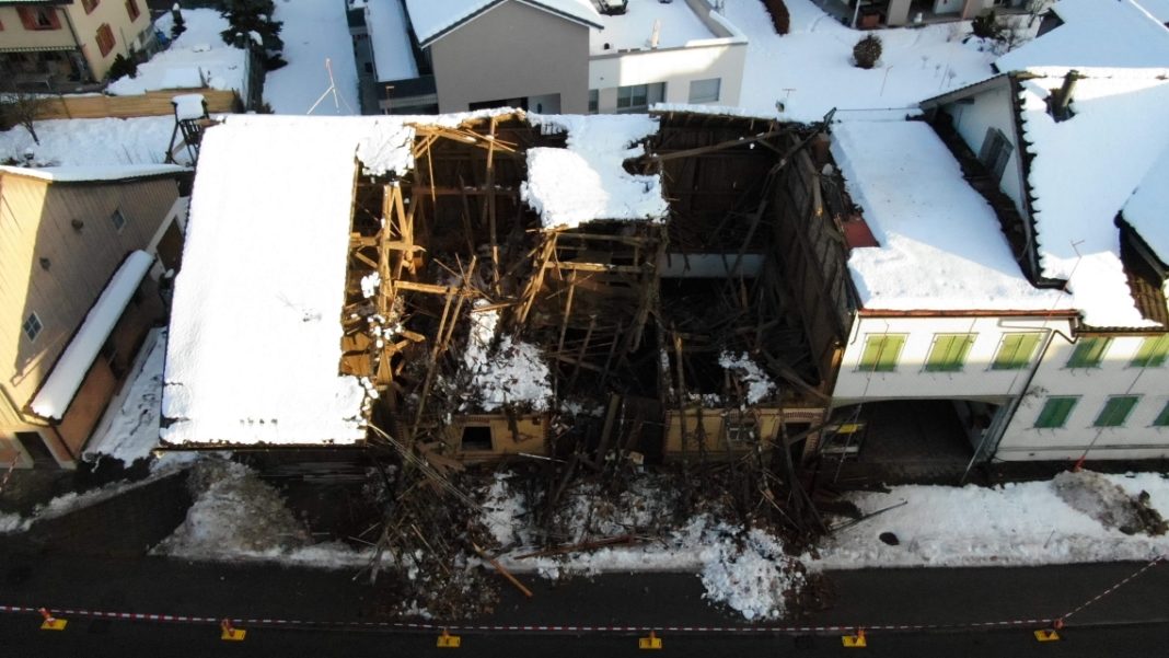 Am Freitagmorgen (22.01.2021), kurz vor 07:00 Uhr, ist an der Hauptstrasse, Im Dorf, eine abbruchreife Scheune eingestürzt. Grund dafür dürfte die massive Schneelast gewesen sein. Wegen Aufräumarbeiten wird eine Strassensperrung veranlasst.