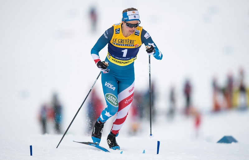 Jessica Diggins (USA) gewinnt das 10km Freistil-Rennen in Toblach und führt die Gesamtwertung an. Foto: Picture Alliance, Frankfurt/Main