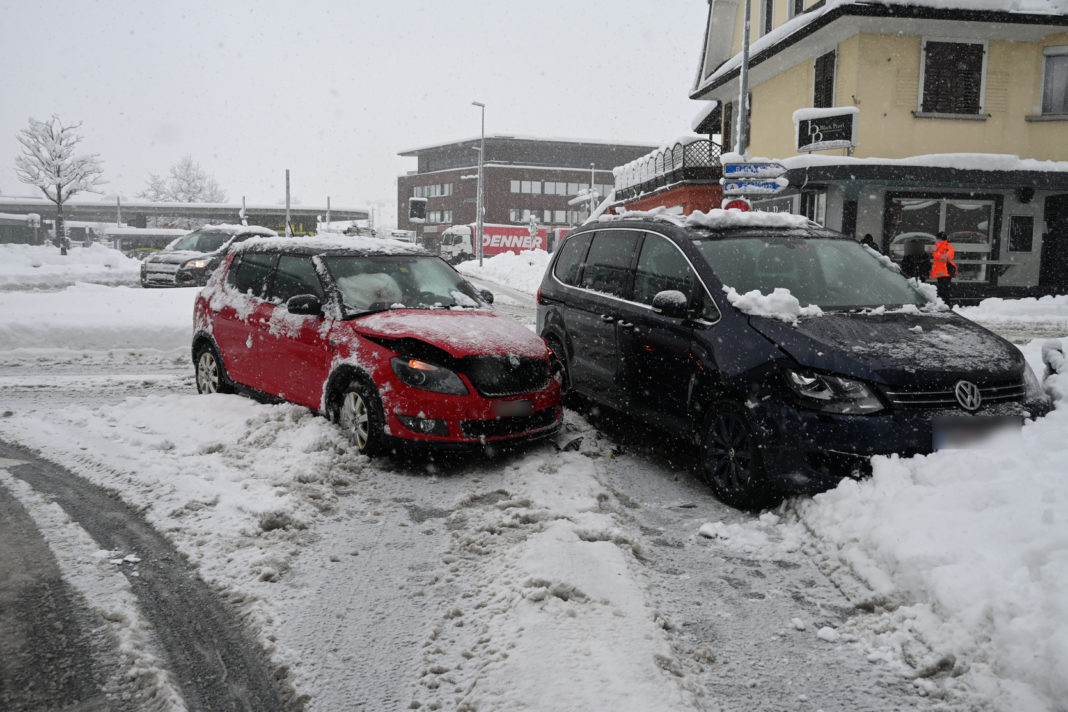 Gegen 07:20 Uhr fuhr in Triesen ein Schneeräumungsfahrzeug auf der Landstrasse in südliche Richtung und bog in die Sägastrasse ein. Als er aufgrund zweier Fussgänger sein Fahrzeug abbremsen musste, kollidierte ein von Balzers kommendes Auto mit diesem.
