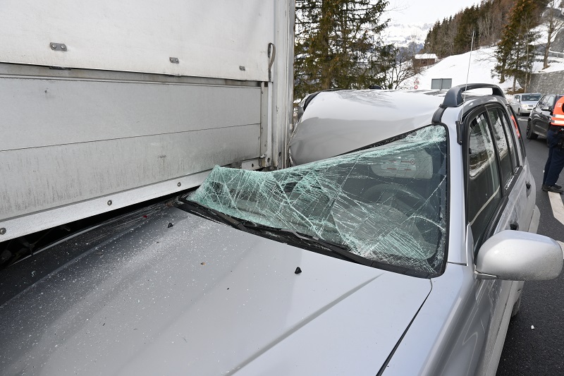Am Donnerstag 31.12.2020, gegen 10:40 Uhr, fuhr ein Lastwagenlenker auf der Bergstrasse in Triesenberg in Richtung Malbun. Aufgrund der signalisierten Höhenbeschränkung von 3.80 Meter für das Tunnel Gnalp-Steg und der Tatsache, dass der Lastwagen mit 4.00 Meter zu hoch für die Durchfahrt war, hielt der Lenker sein Fahrzeug auf Höhe der Abzweigung ‘Gaflei’ am rechten Strassenrand an und schaltete die Warnblinkanlage ein. Ein nachfolgender Fahrzeuglenker, welcher durch die Sonne geblendet wurde, kollidierte beim Versuch am Lastwagen vorbeizufahren mit der rechten Fahrzeugfront seines Personenwagens gegen das Fahrzeugheck des stillstehenden Lastwagens. Dabei geriet der Personenwagen unter die Brücke des Lastwagens, wobei die Frontscheibe und das Fahrzeugdach eingedrückt wurde. Der Lenker des Personenwagens wurde dabei verletzt und wurde zur Untersuchung ins Liechtensteinische Landesspital verbracht. Am Personenwagen entstand Totalschaden, der Lastwagen wurde leicht beschädigt.