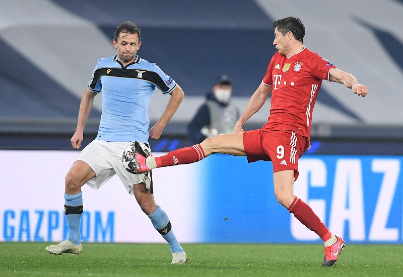 Bild: Champions League, Lazio Roma - FC Bayern München, Stadio Olimpico di Roma. Lazio's Senad Lulic and Munich's Robert Lewandowski (r) in Aktion. Foto: Picture Alliance, Frankfurt/Main