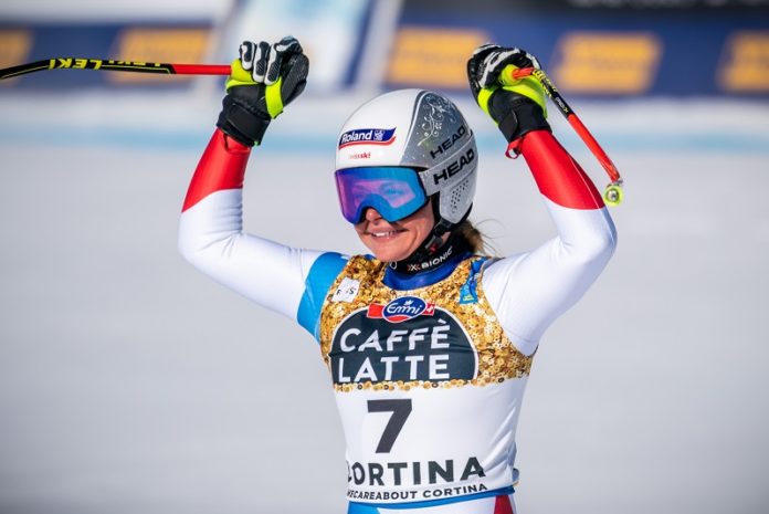 Die Schweizerin Corinne Suter holte sich heute in Cortina d’Ampezzo Gold ind er WM-Abfahrt. Lara Gut-Behrami rundet den Triumph der Schweizerinnen mit dem Gewinn der Bronze-Medaille ab.