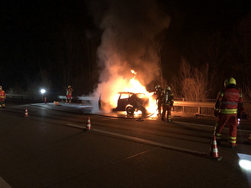 Buchs – Am Freitag (05.02.2021), kurz nach 21 Uhr, ist auf der Autobahn A13 das Auto eines 32-jährigen Mannes vollständig ausgebrannt. Er konnte das Auto noch rechtzeitig auf dem Pannenstreifen abstellen und blieb unverletzt.