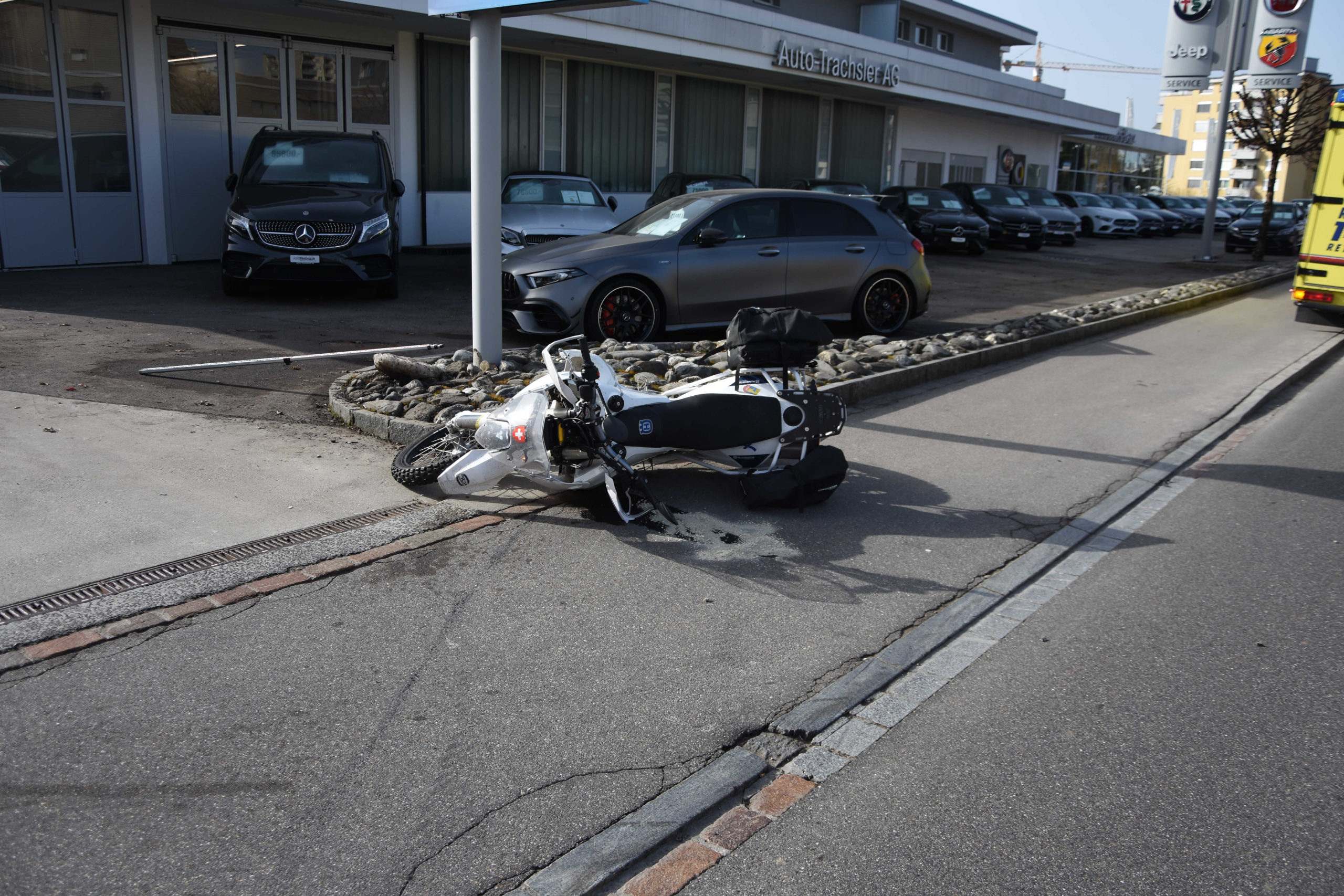 Am Dienstagmorgen (23.02.2021), kurz nach 10 Uhr, sind auf der St. Gallerstrasse ein Motorrad und ein Auto zusammengeprallt. Der Motorradfahrer verletzte sich dabei unbestimmt. Er wurde vom Rettungsdienst ins Spital gebracht.