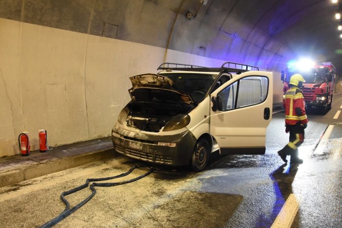 Am Samstag (20.02.2021), kurz nach 14:00 Uhr, hat auf der A15 ein Lieferwagen im Uznabergtunnel gebrannt. Die Brandursache wird untersucht. Der Lieferwagen erlitt Totalschaden.