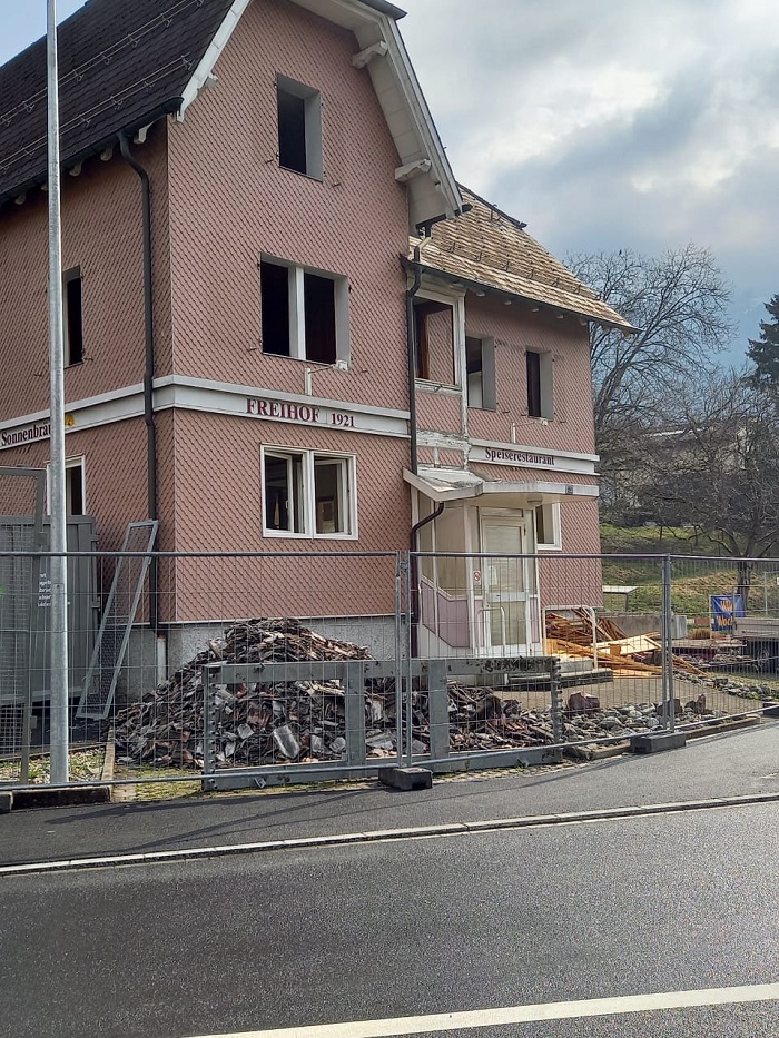 Seit heute befindet sich das Gasthaus Freihof in Mauren im Abbruch.